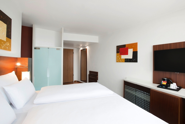 This modern 4-star city hotel is located in the middle of the "Lyoner Quartier" business district on the outskirts of Frankfurt and offers excellent connections to the airport, which is 5 km away, to the Frankfurt Trade Fair and also to the city centre. The nearest S-Bahn station Frankfurt-Niederrad is about 500m away and the main train station Frankfurt is only one stop away. The A5 motorway can be reached in 2 minutes from the hotel. The hotel has 165 standard rooms (24 sqm) with soundproofed windows spread over 6 floors. The rooms are modern, comfortable, bright and decorated in bright autumn tones, and are equipped with flat-screen TV, air conditioning, electronic safe, minibar, rain shower and free Wi-Fi.