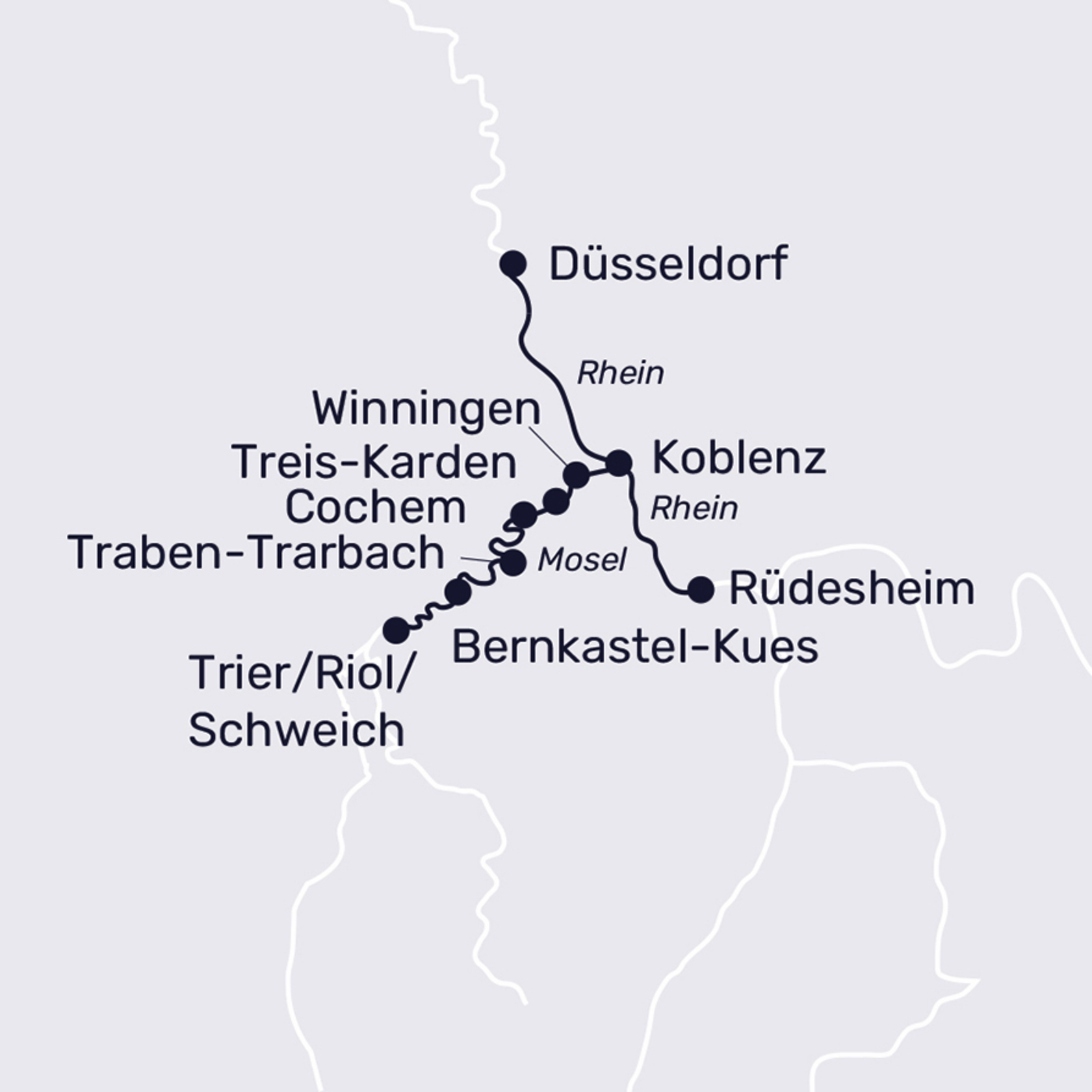 - With Cochem, Trier, and Rüdesheim