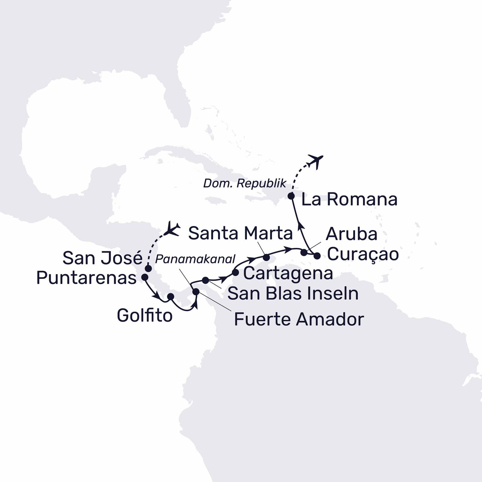 - Von Costa Rica über den Panamakanal bis nach Kolumbien, Aruba, Curaçao und La Romana